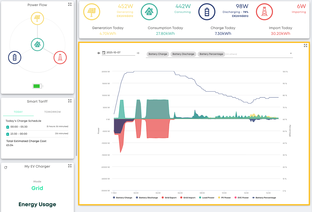 Step 2: After logging in, you’ll be taken to the Monitoring Portal Dashboard. From here, you can view information about your systems import/export data, solar forecasts, tariff savings, and much more.