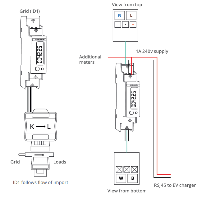 Every EM115/GEM120 meter will need a data connection back to the EV charger’s communication port. The