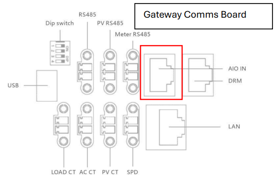 Connect a fully wired RJ45 cable from the Gateway to AIO1, this may already be present, if converting from a single installation.