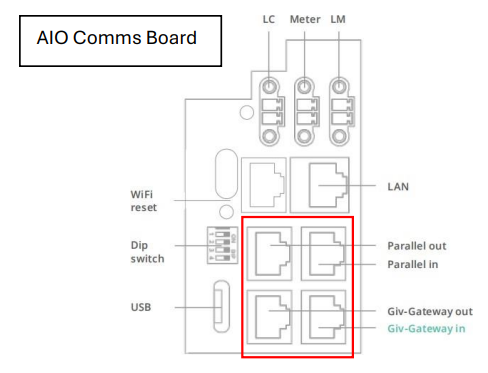 Load all All In One units with at least D612-A612 firmware. Ensure the AIO is rebooted, and firmware is validated correct before connecting up the communications cabling, to ensure the inverter are parallel enabled. Firmware will be loaded on commissioning, manually via USB locally, or via USB-A to USB-A cable locally. Locally is the preferred option.