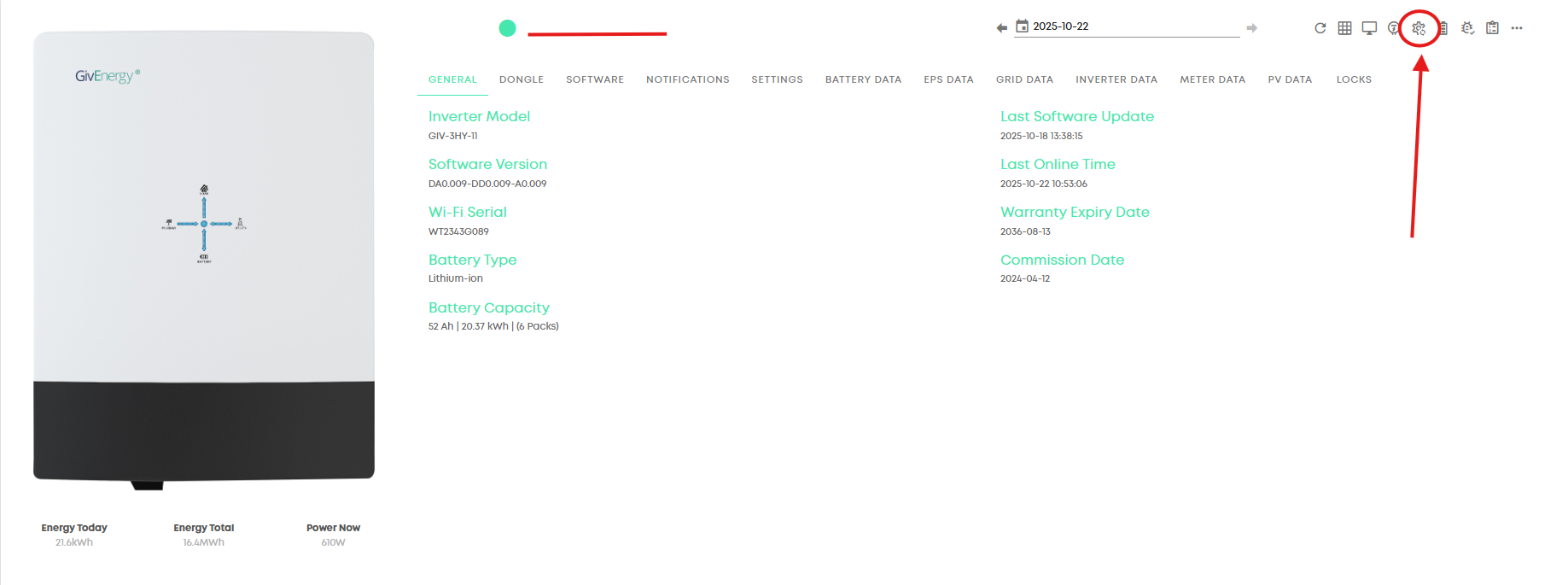 - Log in to your GivEnergy Cloud account at givenergy.cloud.
